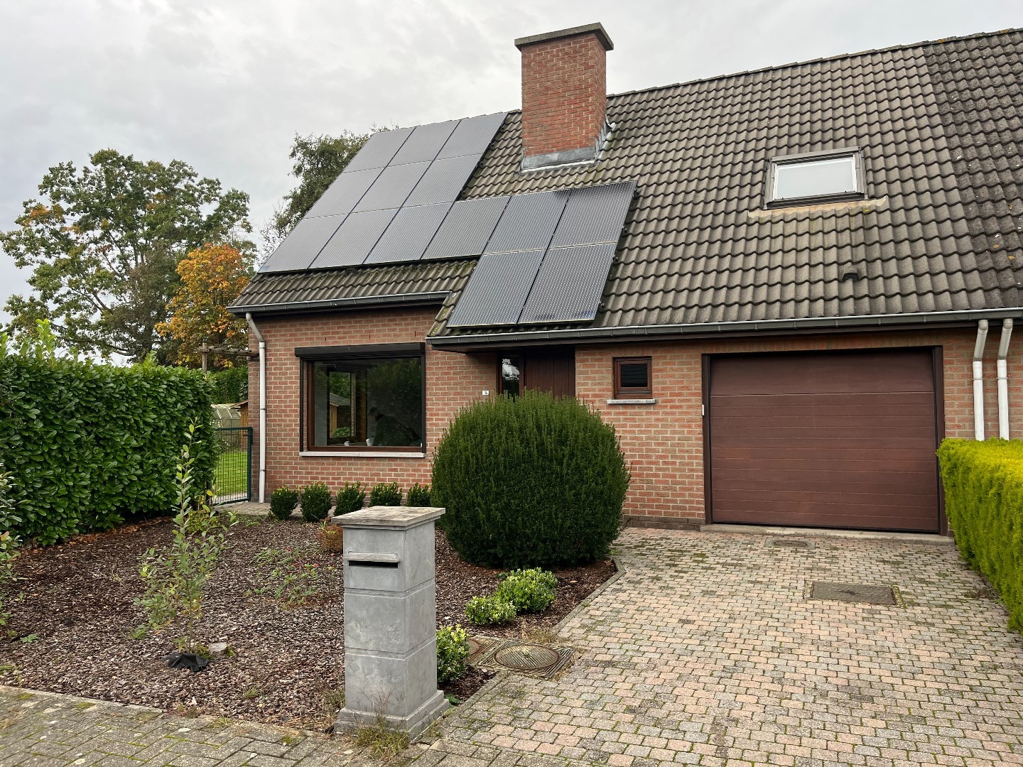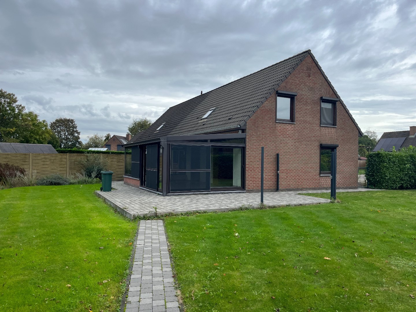 mooie ruime woning met veranda en grote tuin. De woning beschikt op het gelijkvloers over een inkomhal, wc, living, ingerichte keuken, garage en veranda (incl. airco/zonnepanelen). Op verdieping drie slaapkamers, berging en badkamer met ligbad. De drie slaapkamers zijn voorzien van airco. CV op mazout. Warm water elektrisch. Zonnepanelen aanwezig.